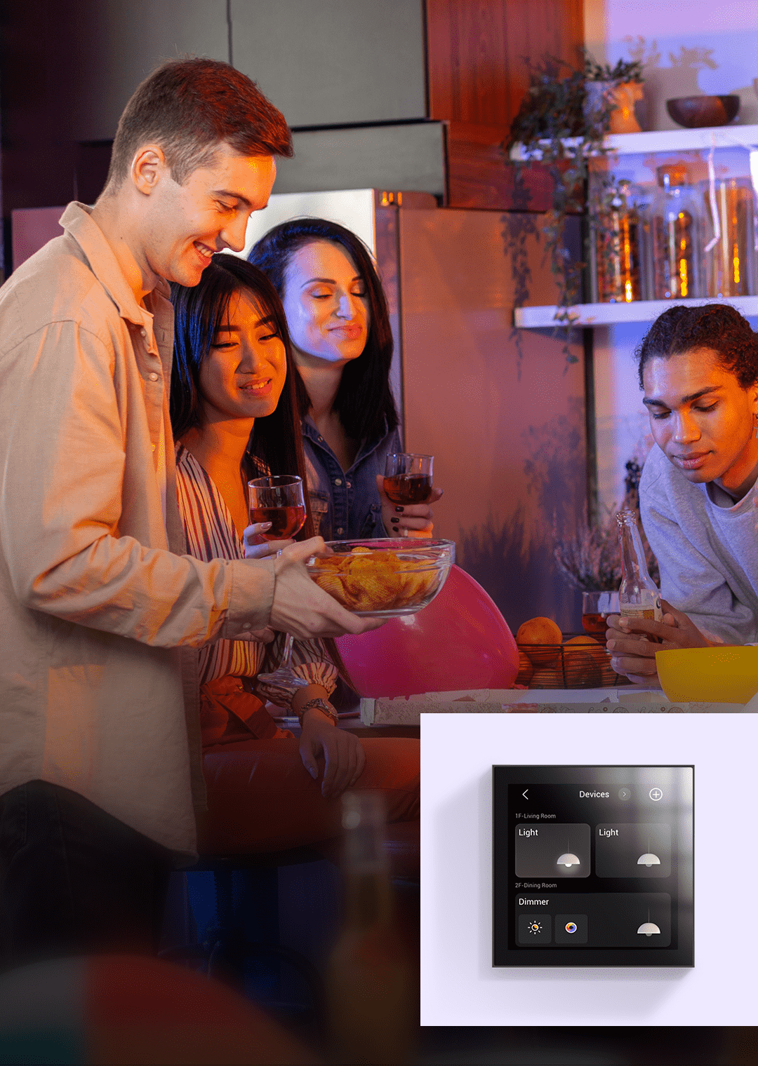 With the minimalist HyPanel, you can say goodbye to chaotic light switches. Turn on or off regular lights with just one tap or adjust dimmable lights to create the perfect atmosphere.