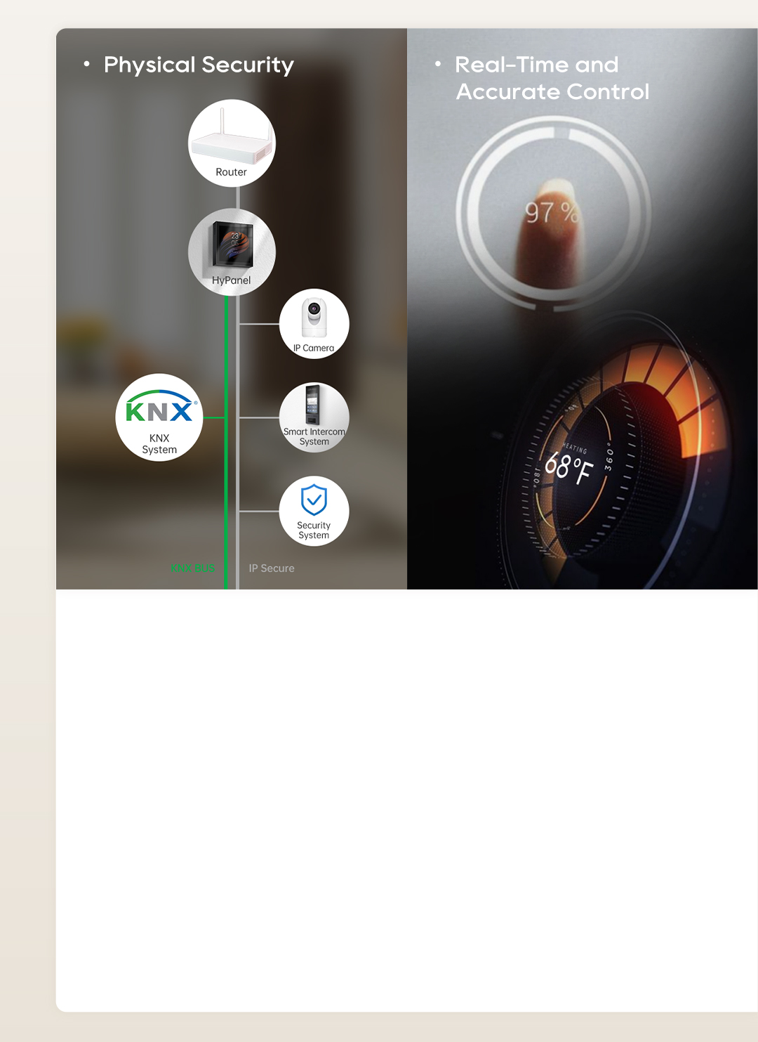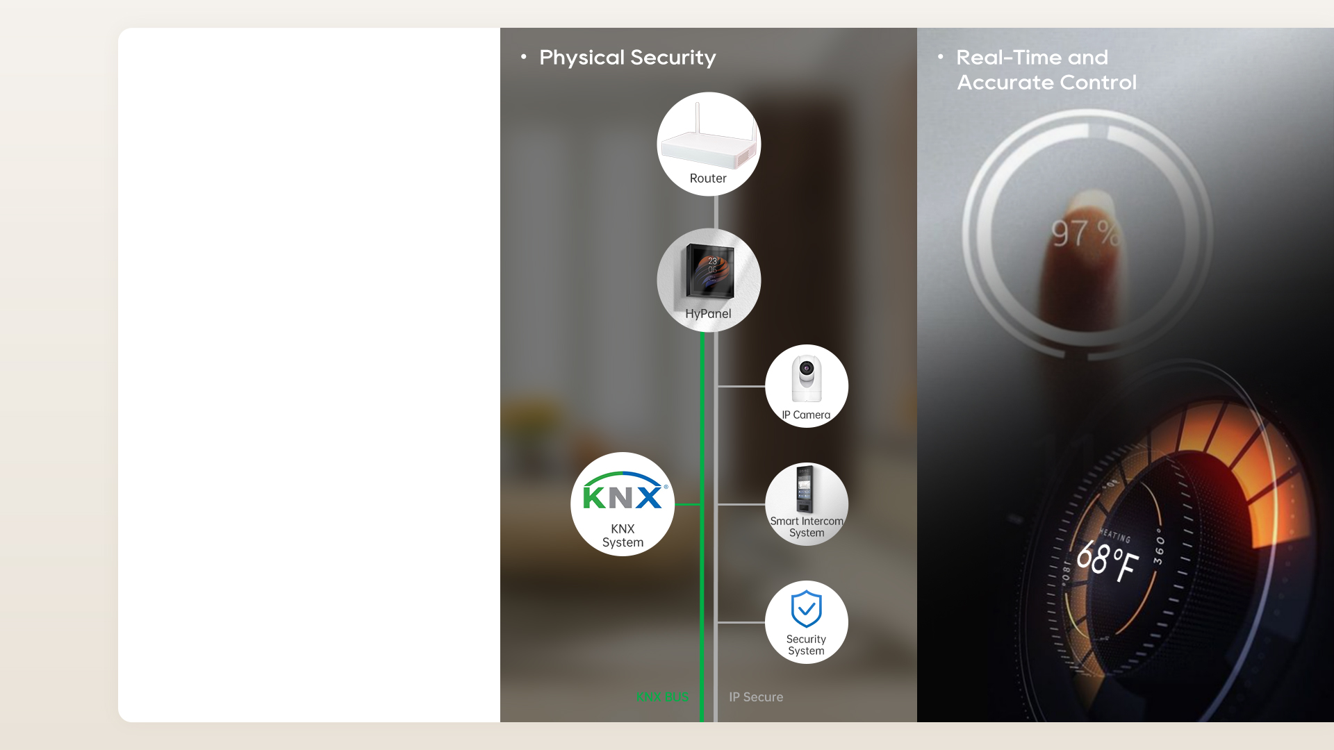 akubela creates a powerful loT network combining wired KNX, wireless technologies, and HyPanels as smart control interfaces.