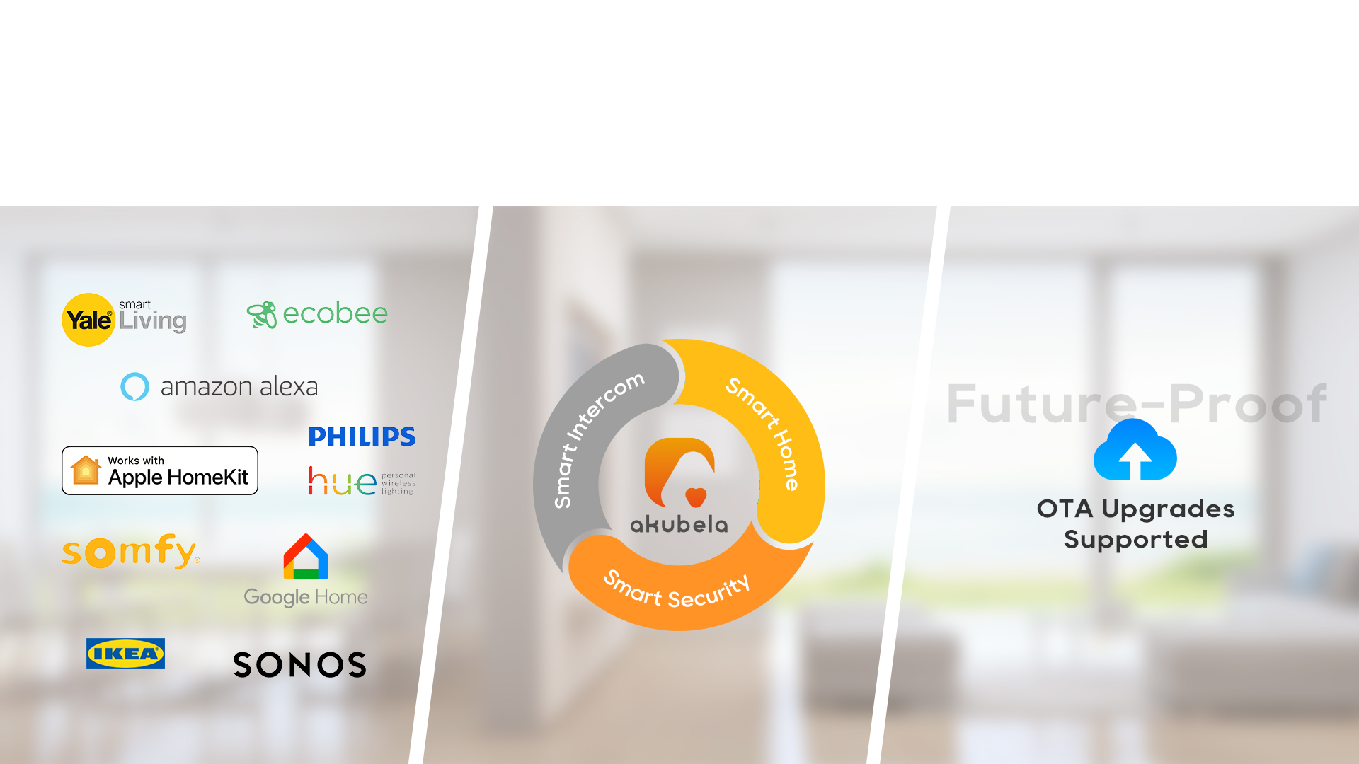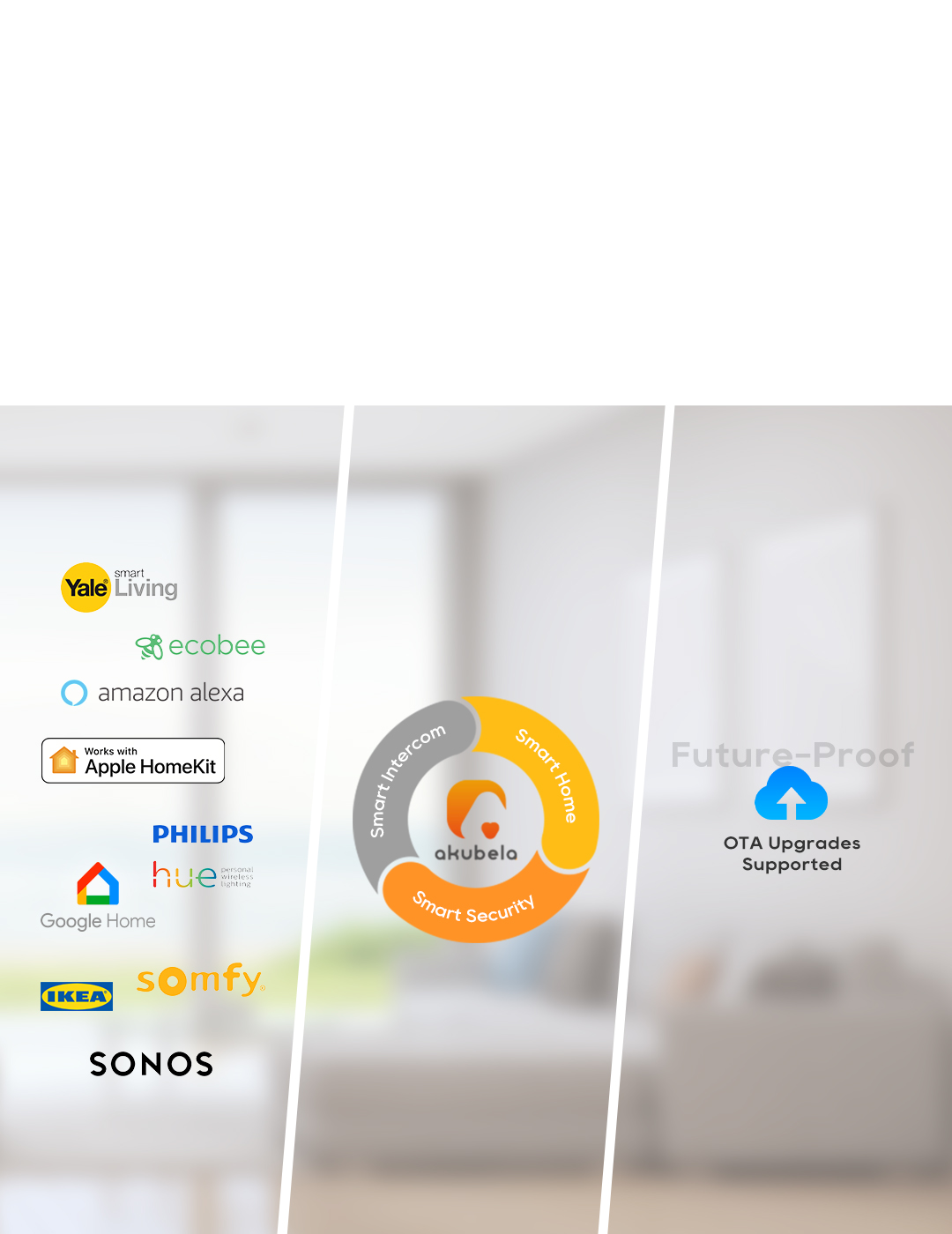 The akubela KNX Smart Home system blends with a variety of third-party ecosystem products, including voice assistants, smart home platforms, and interoperability standards, and offers smart intercom features to boost home security. It stays up-to-date with the latest smart home technologies through over-the-air (OTA) upgrades.